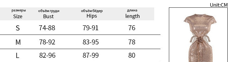 Vestido Brillante con Nudo Lateral – Color Champán · Sexy, Elegante y de Efecto Joya